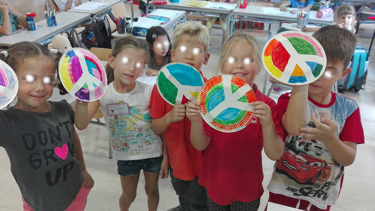 Αξιοποιώντας τη σημερινή μέρα που είναι η Διεθνής Ημέρα Ειρήνης, συζητήσαμε, ζωγραφίσαμε, εκφραστήκαμε, δημιουργήσαμε αφίσες και συνθήματα και γίναμε όλη η Δ’ δημοτικού μια μεγάλη ομάδα για την ΕΙΡΗΝΗ!