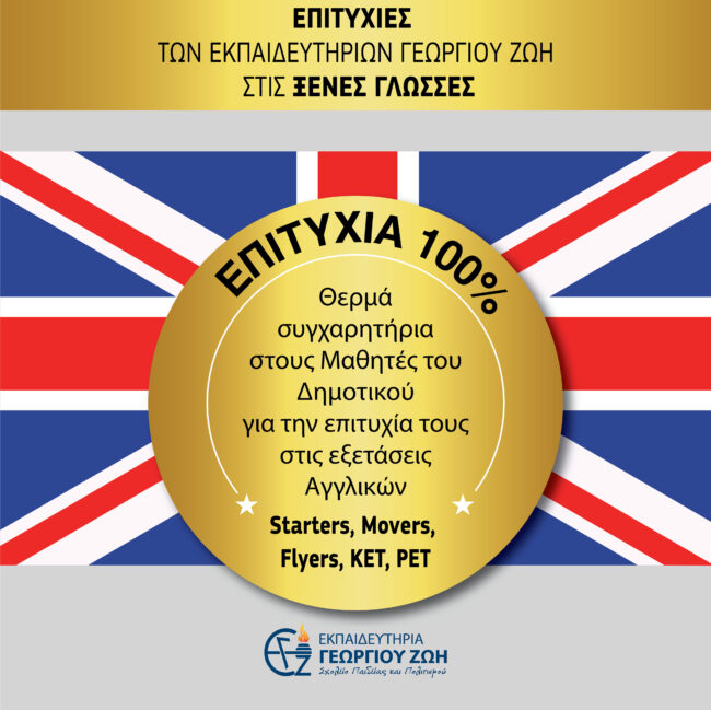 100% επιτυχία στις εξετάσεις Αγγλικών