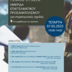 Ημερίδα Επαγγελματικού Προσανατολισμού για Στρατιωτικές Σχολές Στο αμφιθέατρο του σχολείου Τετάρτη 7 Μαΐου 2025 10:00 – 14:00 Μαθητές και μαθήτριες της Γ’ Λυκείου θα έχουν την ευκαιρία να ενημερωθούν από αξιωματικούς όλων των Σωμάτων για τις προοπτικές και τις δυνατότητες … Διαβάστε περισσότερα →