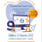 Αργυρούπολη, 20-1-2022 Αγαπητοί Γονείς / Μαθητές, Με χαρά σας ενημερώνουμε ότι τα Εκπαιδευτήρια Γεωργίου Ζώη συμμετέχουν και φέτος ως Εξεταστικό Κέντρο στον Διαγωνισμό Μαθηματικών Iκανοτήτων της Ελληνικής Μαθηματικής Εταιρείας «ΠΥΘΑΓΟΡΑΣ», ο οποίος αφορά μαθητές από την Β΄ τάξη … Διαβάστε περισσότερα →