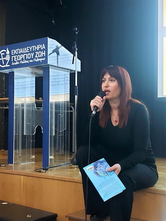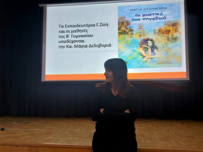 Το Γυμνάσιο είχε τη χαρά και την τιμή να φιλοξενήσει στο θέατρο των Εκπαιδευτηρίων την εκλεκτή συνάδελφο και συγγραφέα βιβλίων παιδικής και εφηβικής λογοτεχνίας κα. Μάγια Δεληβοριά, η οποία έχει τιμηθεί με τρία κρατικά βραβεία συγγραφής θεατρικών έργων για παιδιά και εφήβους από το Υπουργείο Πολιτισμού.