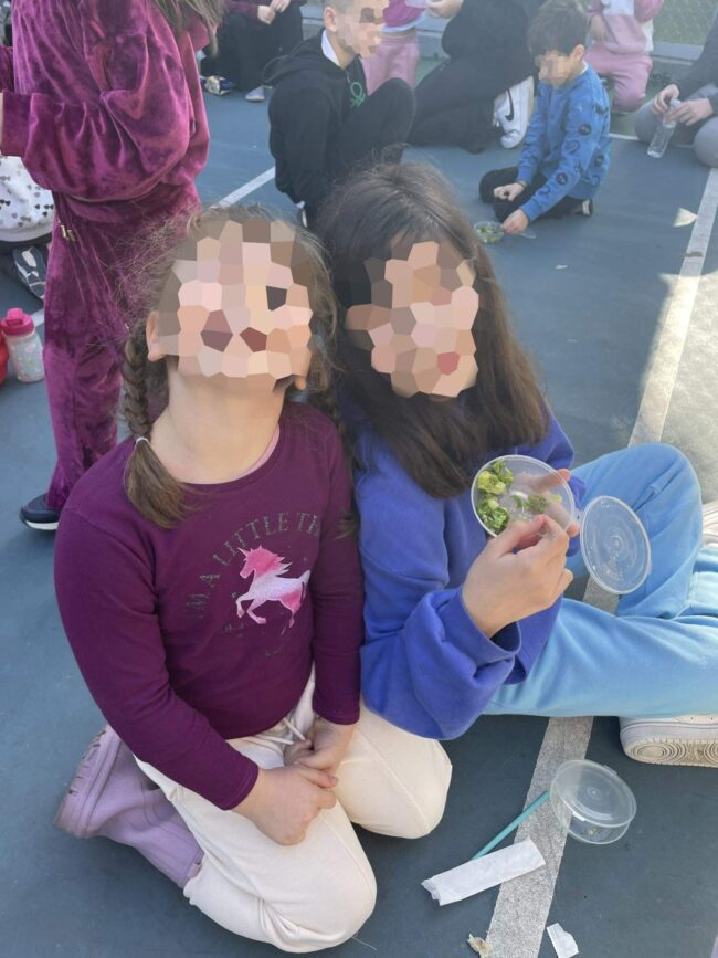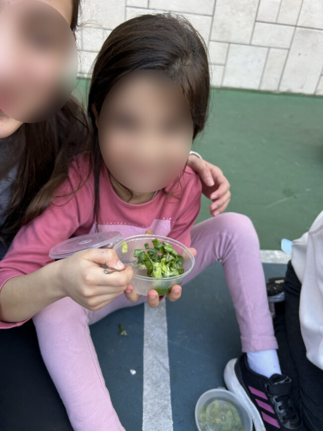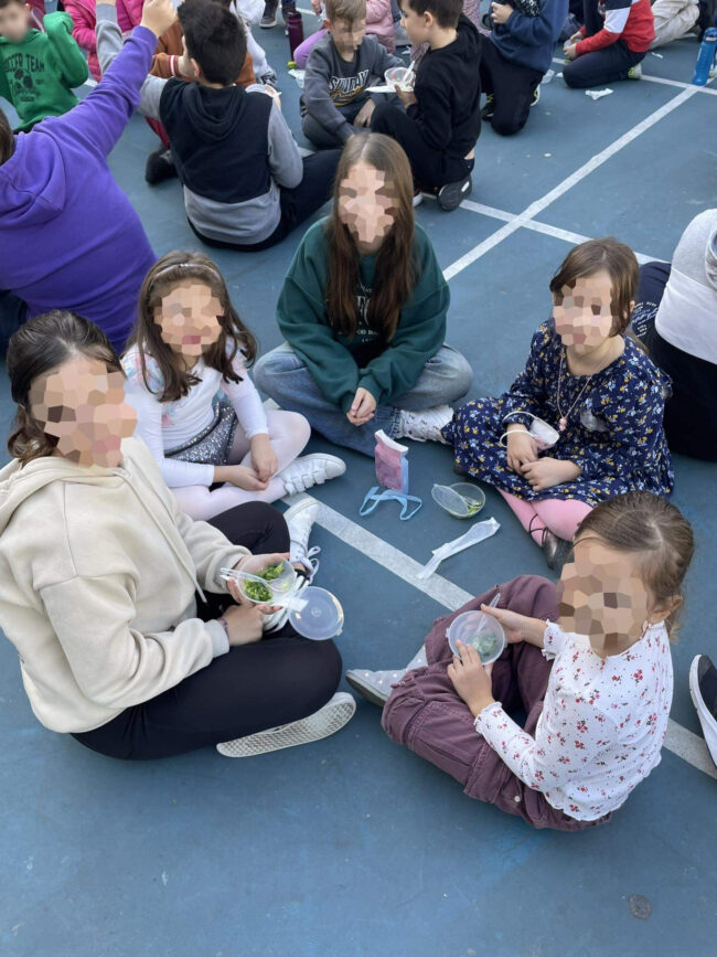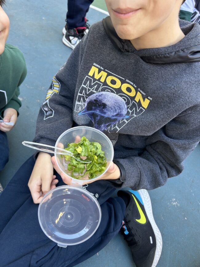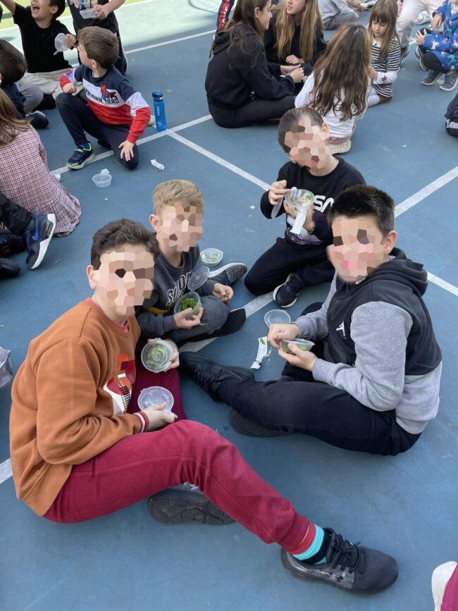 Πριν από δύο μήνες οι μικροί μαθητές της Α’ Δημοτικού μαζί με την Στ’ Δημοτικού που τους έχουν υιοθετήσει, φύτεψαν στον κήπο του σχολείου μας μαρούλια, κρεμμύδια και άνηθο, τα οποία μέχρι σήμερα περιποιούνταν. Τώρα όμως, έφτασε η στιγμή που με ανυπομονησία περίμεναν μικροί και μεγάλοι μαθητές. Μαζεύτηκαν όλοι μαζί και απήλαυσαν στην αυλή του σχολείου μια υγιεινή σαλάτα που ήταν αποτέλεσμα των δικών τους κόπων! Ήταν μια πολύ όμορφη και ευχάριστη εμπειρία και φυσικά μια ακόμη ιδανική ευκαιρία να συναντηθούμε με τους αγαπημένους μας μεγάλους φίλους της ΣΤ’ δημοτικού!