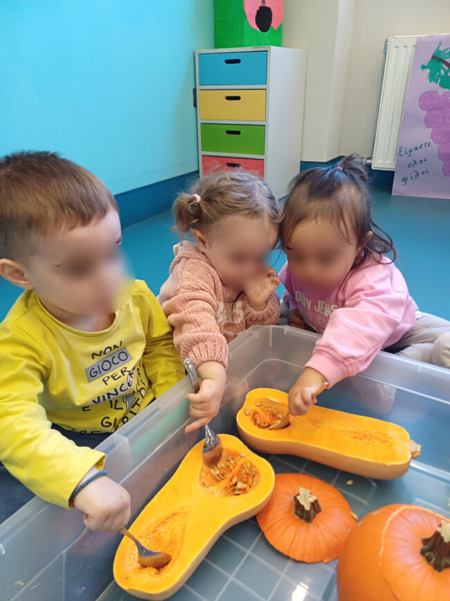 Στον Βρεφικό μας σταθμό, η δημιουργία και η εξερεύνηση είναι στο επίκεντρο κάθε δραστηριότητας! Οι μικροί μας φίλοι έβαλαν τα χεράκια τους και τη φαντασία τους για να ανακαλύψουν τον κόσμο της κολοκύθας!  Από το άδειασμα και την εξερεύνηση του εσωτερικού μέχρι τη ζωγραφική και τον πειραματισμό με τα χρώματα, κάθε βήμα ήταν γεμάτο χαρά και ενθουσιασμό.
