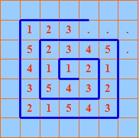 Τα ψηφία της ακολουθίας 123451234512345 … τοποθετούνται διαδοχικά στα τετράγωνα ενός πλέγματος, ακολουθώντας σπειροειδή διάταξη, αρχίζοντας από το σημειωμένο τετράγωνο (βλέπε σχήμα). Ποιό ψηφίο θα τοποθετηθεί στο τετράγωνο το οποίο βρίσκεται 100 τετράγωνα πάνω από το σημειωμένο;