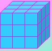Ένας κύβος με πλευρά μήκους 3 cm βάφεται γαλάζιος εξωτερικά. Μετά ο κύβος κόβεται σε μικρότερους κύβους ο καθένας από τους οποίους έχει πλευρά μήκους 1 εκατοστό του μέτρου (βλέπε σχήμα). Πόσοι από αυτούς τους μικρότερους κύβους  έχουν ακριβώς δύο έδρες τους βαμμένες γαλάζιες;