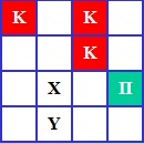 Το κάθε τετραγωνάκι του διπλανού πλέγματος πρέπει να βαφτεί είτε κόκκινο (Κ) είτε πράσινο (Π) χρώμα. Η κάθε γραμμή και η κάθε στήλη του πλέγματος πρέπει να περιέχει δύο κόκκινα και δύο πράσινα τετραγωνάκια. Τι χρώμα πρέπει να βαφτούν τα τετραγωνάκια Χ και Y;