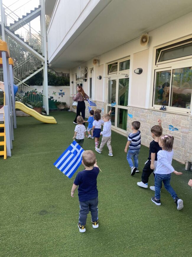 Οι μαθητές του Παιδικού Σταθμού μας παρέλασαν στην αυλή του Σχολείου μας, υψώνοντας ψηλά την ελληνική σημαία, τιμώντας τους προγόνους μας. Η καθηγήτρια των Αγγλικών της Προσχολικής Αγωγής με το ταμπούρο της συνόδευσε τα παιδιά δίνοντας το σωστό βήμα!