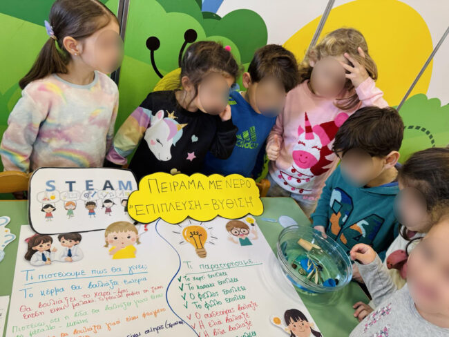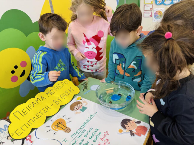 Μαγικές στιγμές γεμάτες ανακαλύψεις! Στο πλαίσιο των φυσικών επιστημών, τα παιδιά αλληλεπιδρούν με συναρπαστικά υλικά και έννοιες, όπως “επίπλευση” και “βύθιση”.