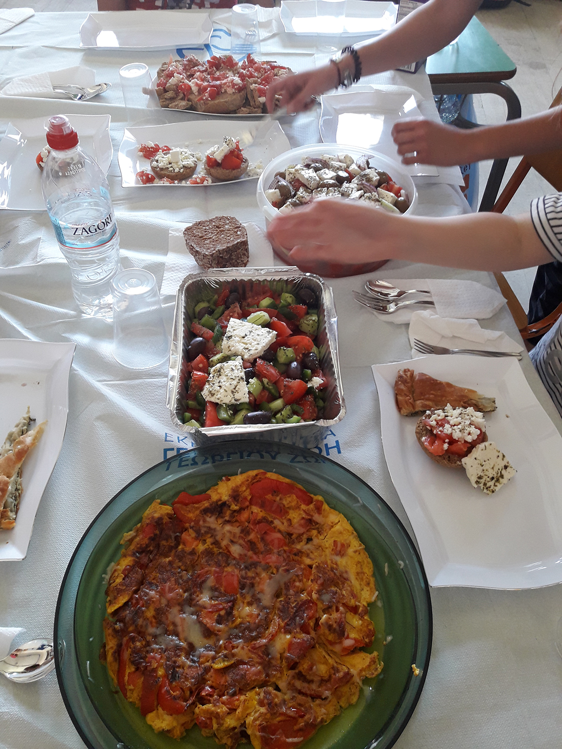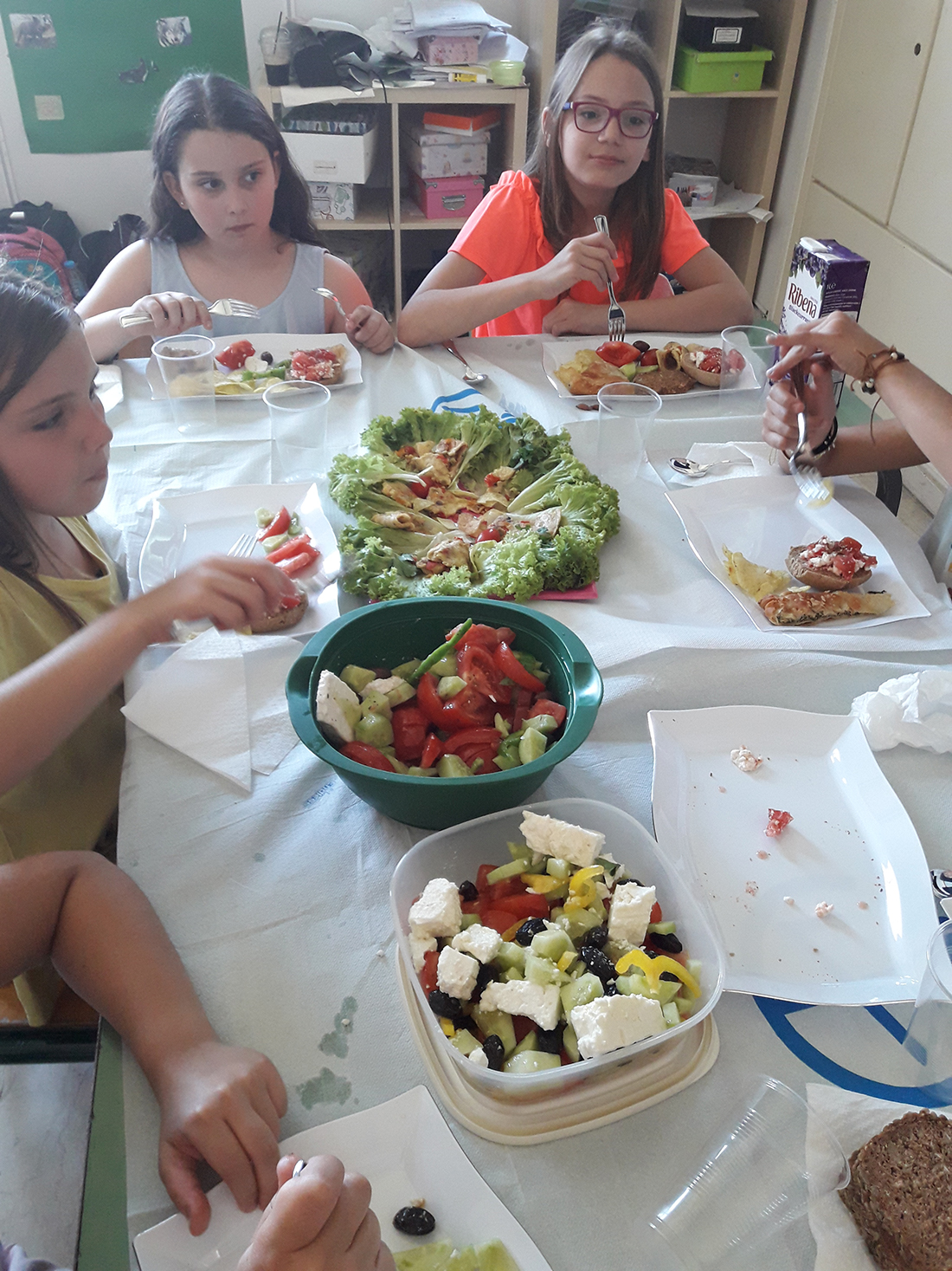Συγκεκριμένα, τα παιδιά αποφάσισαν να κάνουν μια συγκέντρωση φίλων ή ένα πάρτι, όπως θα λέγαμε σήμερα, συνεισφέροντας ο καθένας με τον δικό του τρόπο. Κάποιοι μαθητές ανέλαβαν να φτιάξουν χωριάτικη σαλάτα, άλλοι ομελέτα με διάφορα λαχανικά, άλλοι σπανακόπιτα και άλλοι κριθαροκουλούρα με ντομάτα και φέτα (τον σημερινό «ντάκο»).